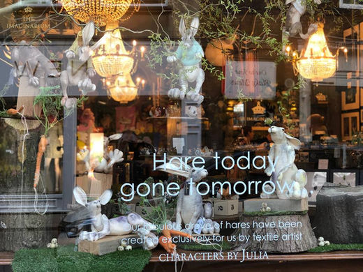 For Easter 2019, I was asked to create a window display for the magical shop of wonders - The Imaginarium in York. I love hares and I relished in the challenge to create 9 large sculptures with different characters. The team at The Imaginarium did such a good job at displaying them, calling it Hare today - gone tomorrow.